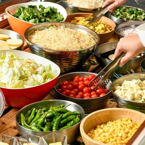 ひとまずコレ!お子様からご年配まで大人気のサラダバー!お店で手作りした自慢の料理を思う存分食べまくれ!焼き野菜や焼きそば、ちょっとしたデザートまで充実のラインナップ!お腹一杯食べ放題!