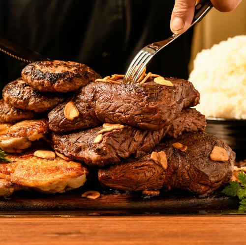 合い挽き肉汁爆発ハンバーグ(100g) & ハラミステーキ(100g) & チキンステーキ